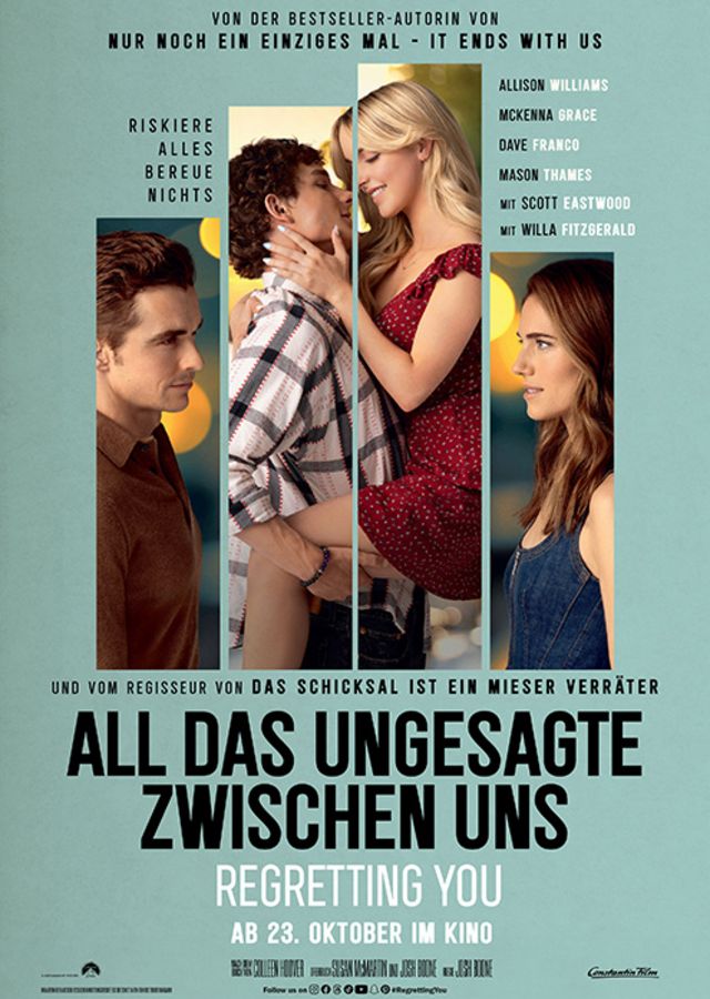 ALL DAS UNGESAGTE ZWISCHEN UNS - REGRETTING YOU erzählt die parallel verlaufenden Geschichten einer jungen Mutter, Morgan Grant (Allison Williams), und ihrer 16-jährigen Tochter Clara (Mckenna Grace), deren Welt von einer verheerenden Familientragödie erschüttert wird. Mit Warmherzigkeit und Humor verknüpft dieses bewegende Drama Claras ergreifende Coming-of-Age-Geschichte mit Morgans emotionaler Reise, die mit Blick in ihre eigene Vergangenheit ihre Zukunft neu definiert. (Quelle: Verleih)